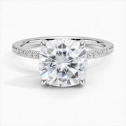 Luna 4-Prong Cushion Side Stones Moissanite Engagement Ring