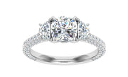 Blazing Cushion 3 Stone Moissanite Engagement Ring