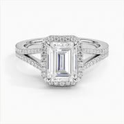 Fortune Emerald Halo Moissanite Engagement Ring - Silver 925 / 1.00 CT