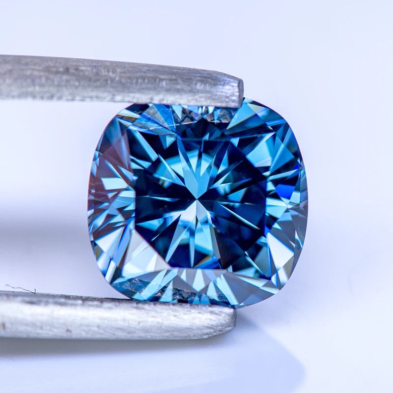 Inform when this item available Blue Cushion Cut Certified Moissanite