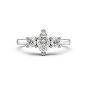 Oromise 4 Prong Marquise Lab Grown Diamond With Round On Side Three Stone Engagement Ring - 9K White Gold / 0.35 ct