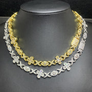 Twilight Radiance Iced Moissanite Tapered Baguette Cut Cross Devil Eyes Chain - White Gold / 16 Inches