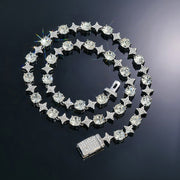 Sparkle Strand 8mm Moissanite Iced Quadrangular Star Chain in Gold - White Gold / 16 Inches