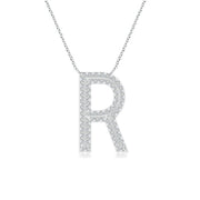 Modern Moissanite Capital "R" Initial Pendant - Silver 925