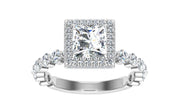 Engraved Princess Double Edge Halo Moissanite Engagement Ring