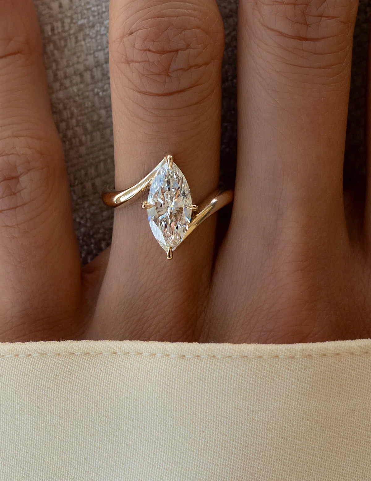 Marquise Cut Moissanite Vertical Ring — Prong Setting
